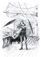 All the while, there were Dreams. He dreamed of white walls, fractious waves that roiled and became immensely tall. He sailed, only a few feet about the waves on his white wings, then came the waves. As high as he flew, as hard as he beat his wings the waves caught him. They drowned him. He felt the air crushed out of his bird-lungs and felt his feathers soak and the world turn to water. Often he would attempt to put his odd emotions into words: