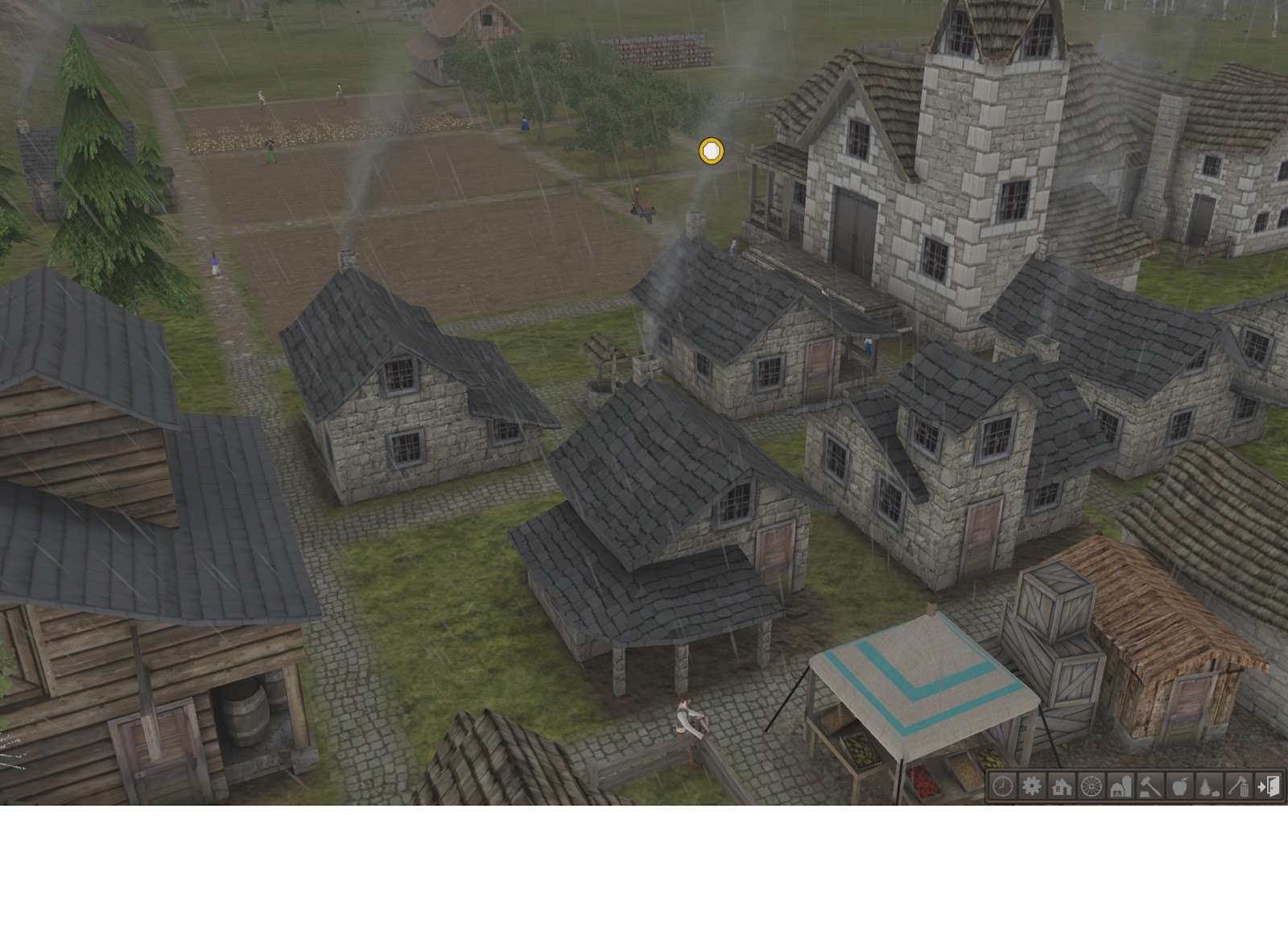 The first go was a flop and I scrapped it. Subsequent towns reached that quiet equilibrium I spoke of. Not much happens, until it does — pestilence can mess up your food supply; an influx of nomads can suddenly put some of your population into homelessness and starvation if you\’re not prepared; less serious opportunities, like getting that cool crop or cattle when Fartface the trader arrives, can be lost if you\’re not stocked up on trade items (iron tools, basically).