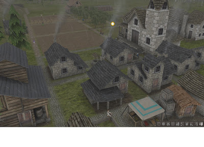 It\’s at this point that the aesthetic element of the city-building game comes in to play. In numerous iterations of my towns I knocked down more than a few houses to rebuild them elsewhere, constructing a city-center that was at least somewhat symmetrical and aesthetically pleasing. The sandbox element is able to shine here. Even though you only have a few buildings to choose from, none of which having more than a plain, wood-and-stone, quasi-dark age Europe architecture, the freedom of arrangement (unbound by the grid systems of other such games) lets you layout your settlement however you choose. A dense, gridded townscape can work, or a spread out forest village is equally viable. I opted for a blend of these, with a center village and then a few sporadic outposts for hunters and foresters. Any design is basically effective, though questions of efficiency can come in to play if stockpiles and barns are too spread out. It\’s good plain fun.