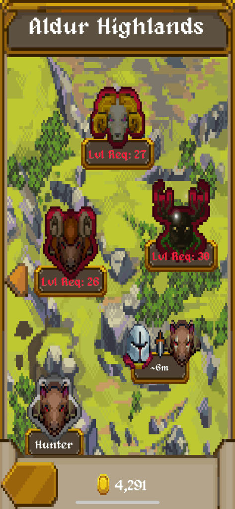 I’m on my third go round with this game. I’ve had it for a few years and keep coming back, so that’s a good sign, especially considering my usual life cycle with mobile games: download, enjoy for two days, delete. In some part this love affair is thanks to the presentation: there is lovely pixel art, big chonky buttons, fun music. I love the theme, I love leveling up and training new heroes. The feel of running some business or other in a realm of what we tend to think of as medieval fantasy is quite nice.