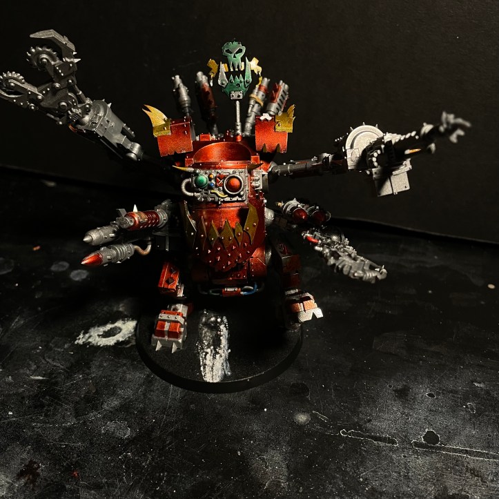 Most important of all is the practice of acceptance. Even if I absolutely wanted to, I’m not sure I could muster up the focus and determination to become a world class painter. And that’s okay. I may not bullseye the goal I set out for when I started building and painting, and that’s okay too. I’ve found a great joy in reaching many happy little accidents painting miniatures. It’s extremely similar to the writing process: we stumble upon new characters and ideas that we did not expect. That ork has a green smudge on his powerklaw not because I messed up and couldn’t correct it, but because…he got in a fight with another Ork! Or something.